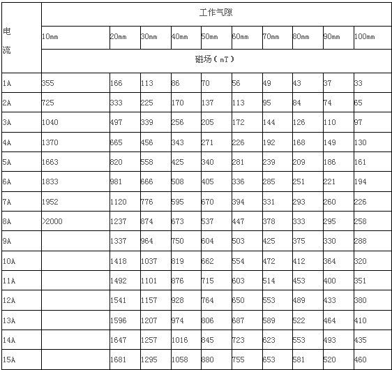2.4、最大磁場(chǎng) :H>2T,  工作氣隙10mm時(shí)